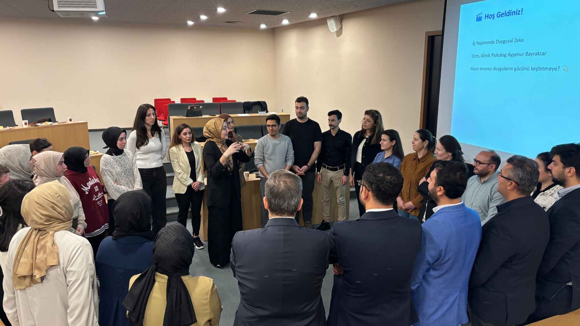 The Human Resources Department and the Psychotherapy Application and Research Center (IPAM) collaborated to organize a comprehensive seminar on the importance of emotional intelligence in the workplace and its effective use for our university staff. The seminar was conducted by Clinical Psychologist Ayşenur Bayraktar on Tuesday, October 14, 2025.