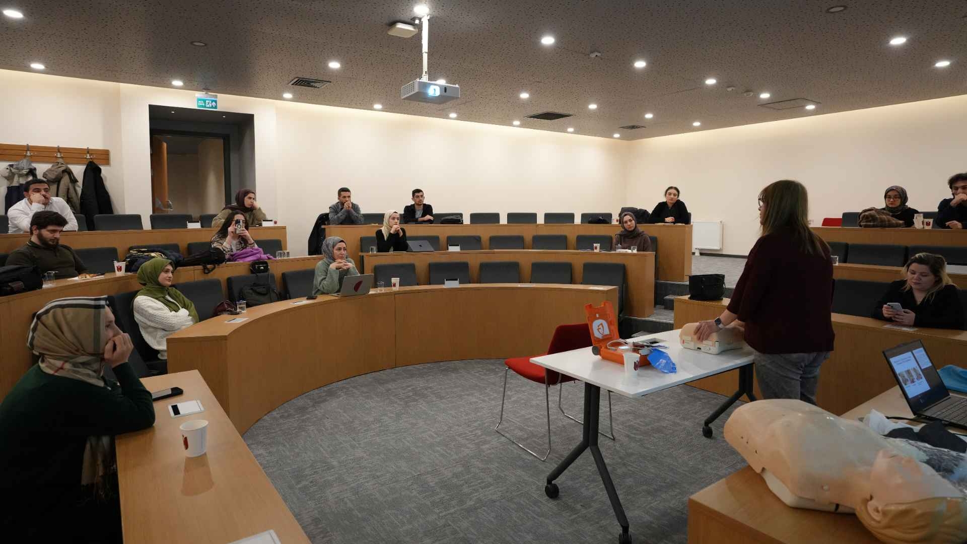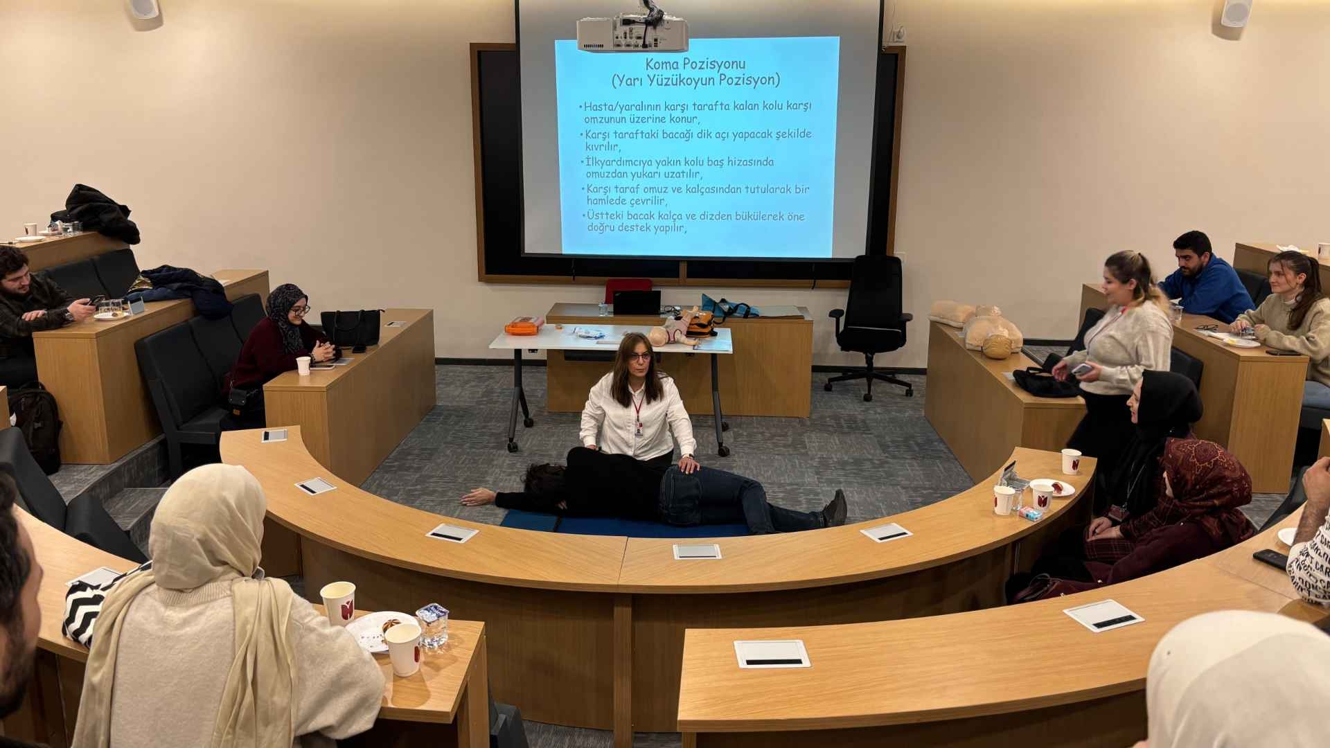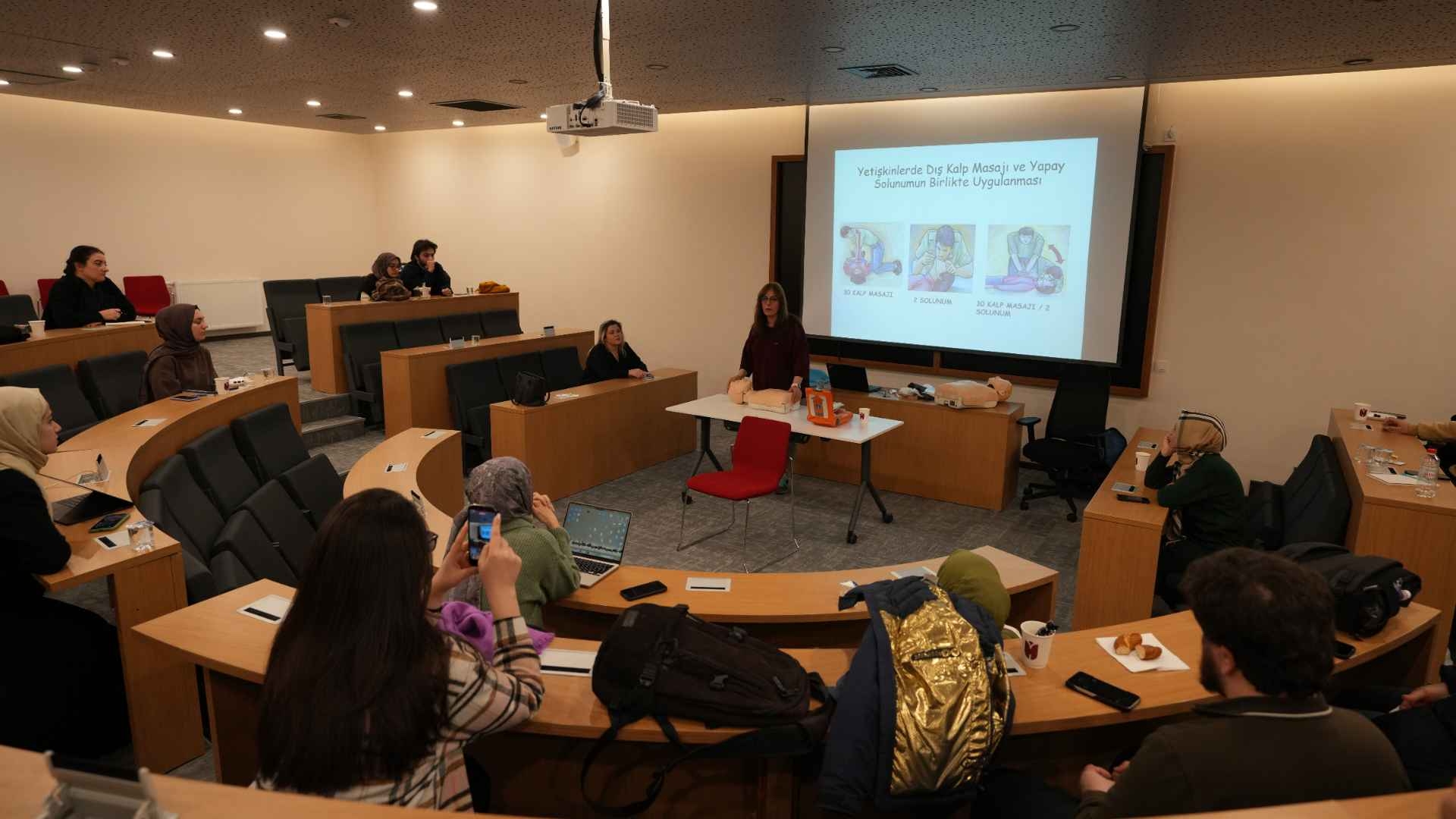 Üniversitemiz çalışan ve öğrencilerinin acil durumlara hazırlık seviyesini artırmak amacıyla hayata geçirilen "Sertifikalı İlk Yardım Eğitimi" serisinin üçüncüsü, 11-12 Şubat tarihlerinde tamamlandı. İl Sağlık Müdürlüğü iş birliğiyle düzenlenen ve ilk adımı 2025 yılı Aralık ayında atılan eğitimde, temel yaşam desteğinden OED cihazı kullanımına kadar geniş bir yelpazede kritik müdahale teknikleri ele alındı.